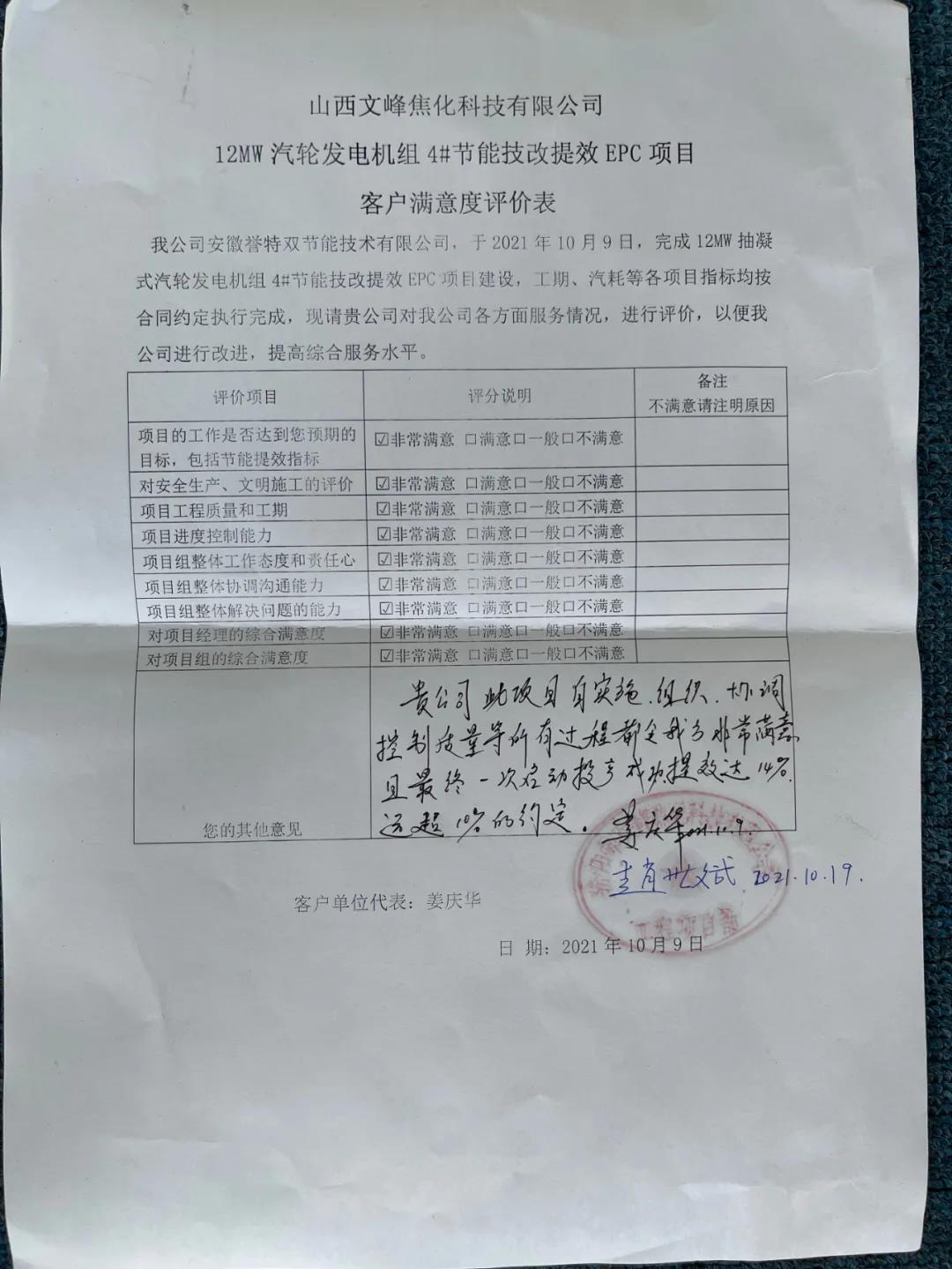 同時,客戶對我公司的項目建設(shè)綜合管理服務(wù)水平給予高度評價,對我公司在項目建設(shè)過程中勇于創(chuàng)新、敢于碰硬的優(yōu)良作風(fēng)給予高度贊揚(yáng),在此,我公司誠摯對用能單位、外協(xié)兄弟單位、項目負(fù)責(zé)的各位同事致以崇高的敬意和衷心的感謝!