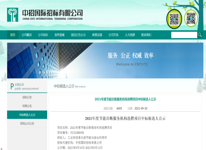 9月10日,公司通過工業(yè)和信息化部節(jié)能與綜合利用司的采購(gòu)招標(biāo)程序,順利中標(biāo)“2021年度節(jié)能診斷服務(wù)機(jī)構(gòu)選聘項(xiàng)目”。這是繼2019、2020年之后,第三次中標(biāo)年度節(jié)能診斷服務(wù)機(jī)構(gòu)選聘項(xiàng)目,我公司已累計(jì)為21家工業(yè)企業(yè)提供公益性節(jié)能診斷服務(wù)。