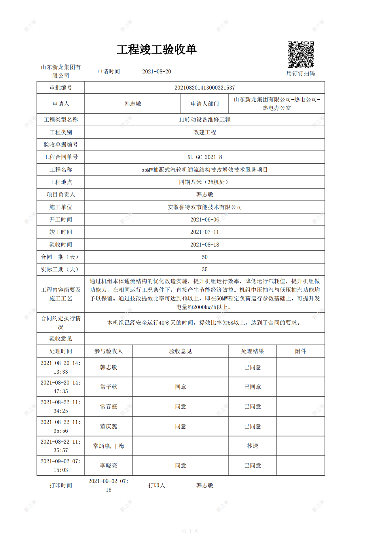 喜訊——山東新龍集團(tuán)55MW抽凝式汽輪發(fā)電機(jī)組通流改造節(jié)能提效EPC項目順利通過工程驗收
