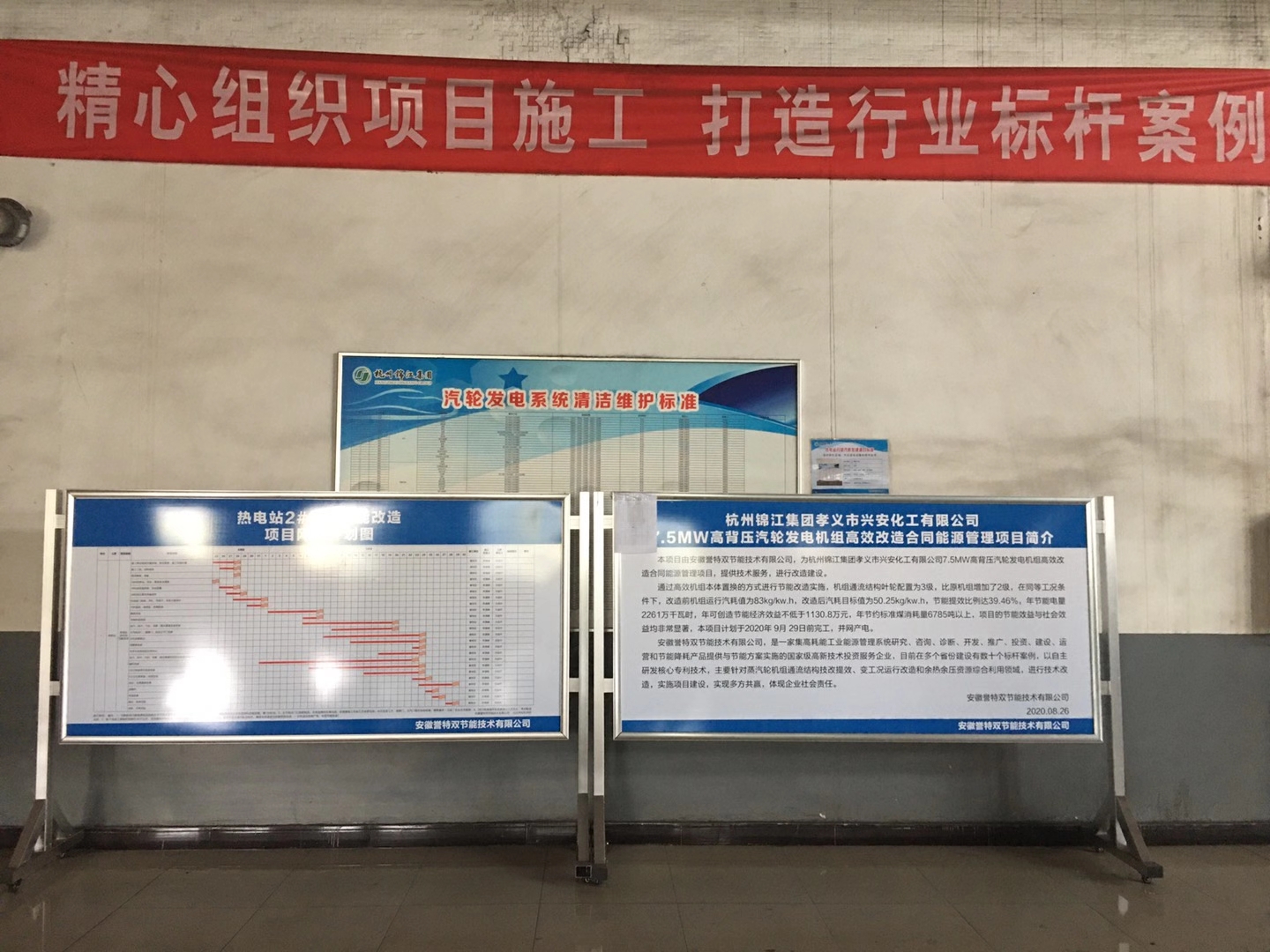 2020年10月19日上午10時許,我公司以合同能源管理效益分享型商務模式,全額投資的世界五百強杭州錦江集團全資子公司——孝義市興安化工有限公司8MW高背壓式汽輪發(fā)電機組高效改造項目,機組型號:B8-9.2/6.7//535,項目正式進入工程驗收,對節(jié)能提效指標進行精準測試。
