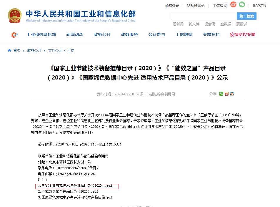 熱烈祝賀公司入選《國(guó)家工業(yè)節(jié)能技術(shù)裝備推薦目錄(2020)》