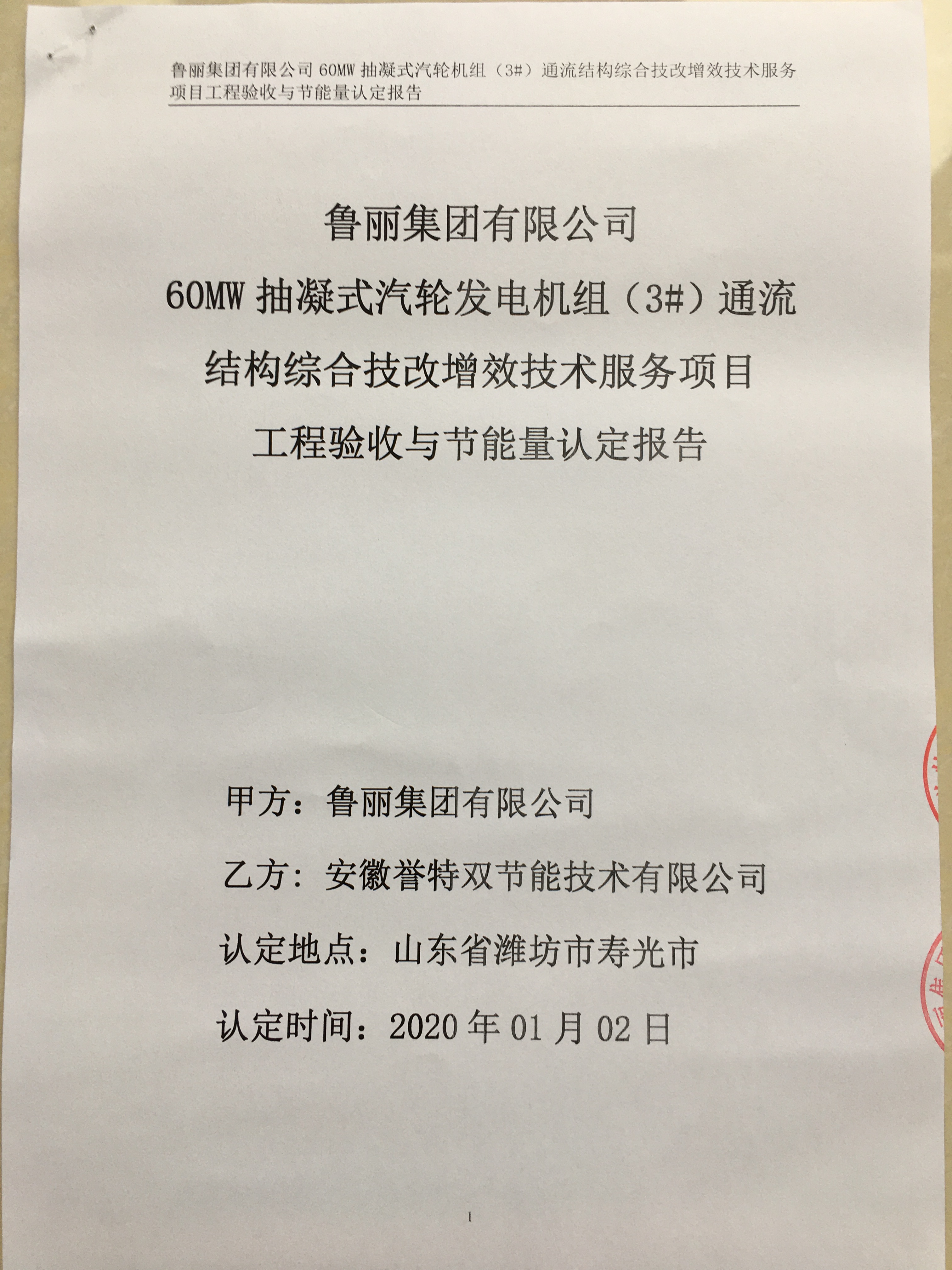 2020年1月2日上午,我公司技術服務項目——魯麗集團有限公司60MW雙抽凝式汽輪機組通流結(jié)構(gòu)綜合技改提效項目,通過節(jié)能量認定和工程驗收。