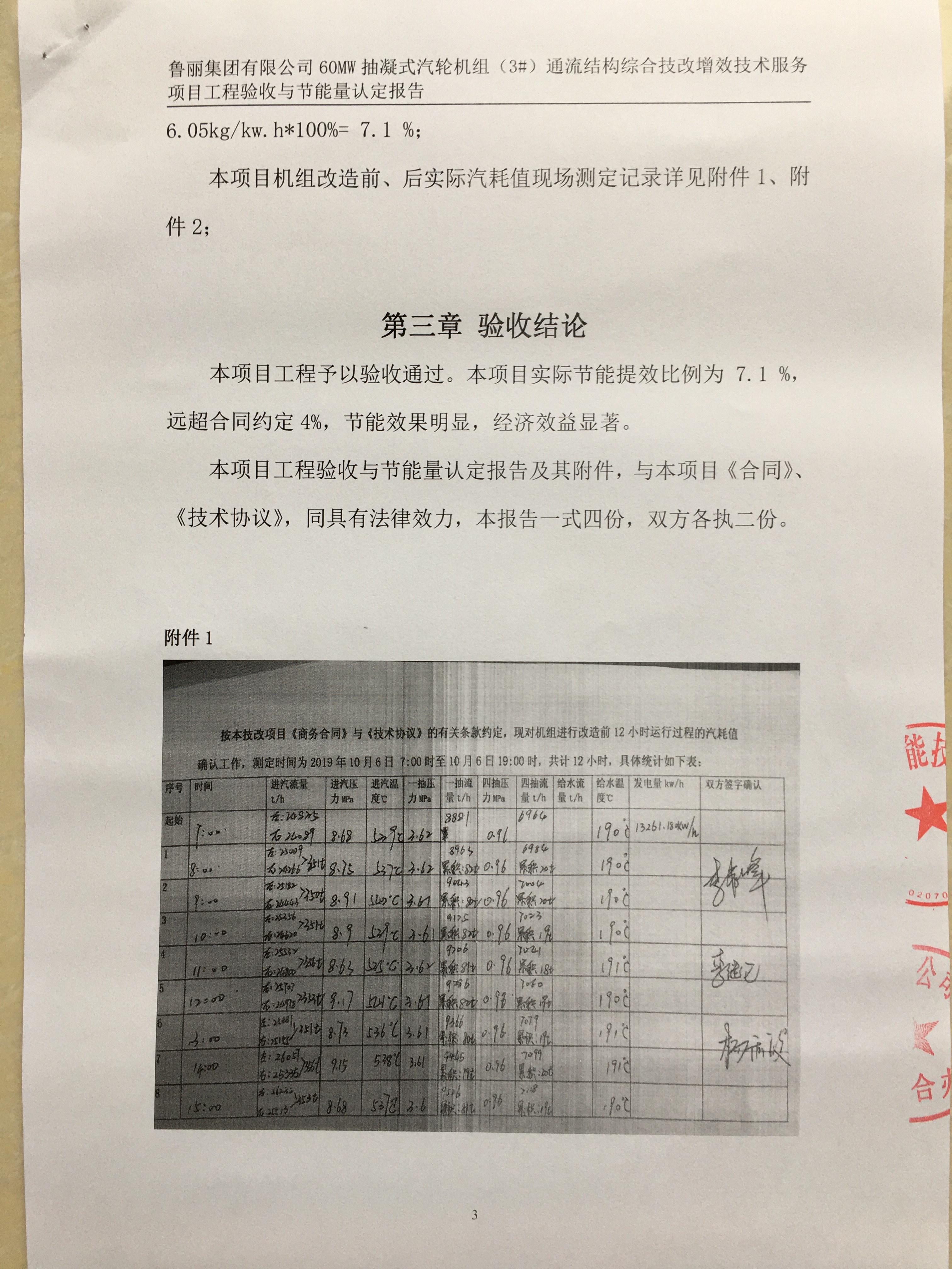 我公司于2019年12月22日,提前完成項目建設,一次性開機沖轉(zhuǎn)成功,并網(wǎng)產(chǎn)電,機組運行正常、穩(wěn)定。經(jīng)過168小時老化運行,于2020年1月1日晚23:00時開始,至1月2日中午11:00時結(jié)束,共歷時12個小時,現(xiàn)場進行節(jié)能量測定工作。