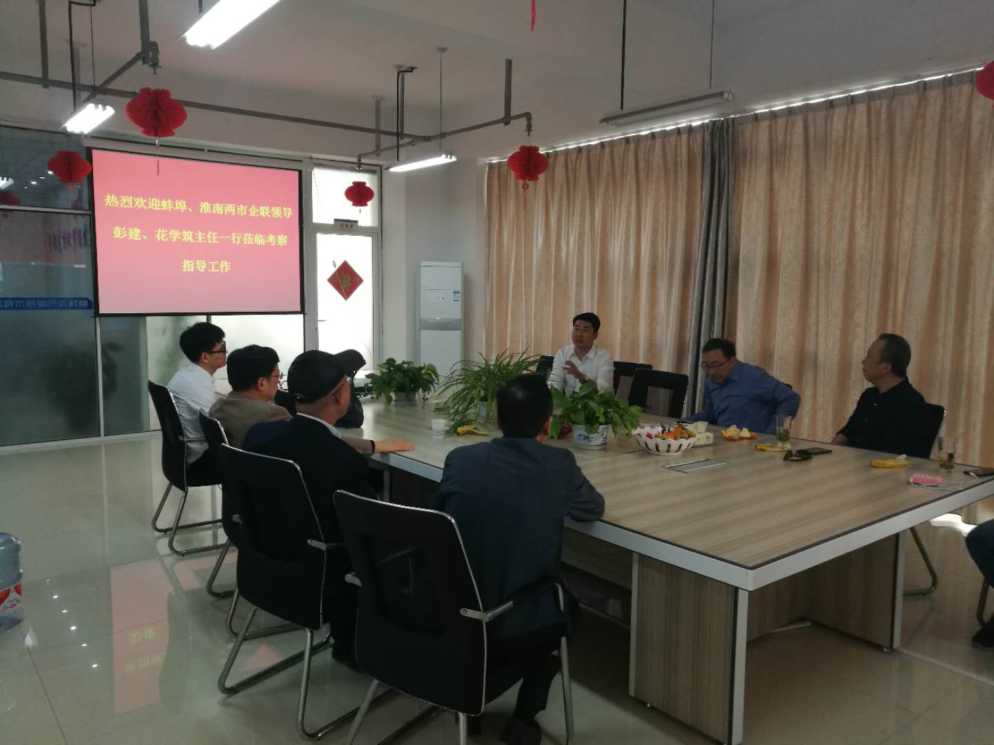 4月20日,蚌埠、淮南兩市企業(yè)聯(lián)合會領(lǐng)導(dǎo)彭建、花學筑主任一行蒞臨我公司考察指導(dǎo)工作,市經(jīng)信委、創(chuàng)業(yè)園區(qū)相關(guān)領(lǐng)導(dǎo)與公司董事長車延花熱情接待了彭建、花學筑主任一行。