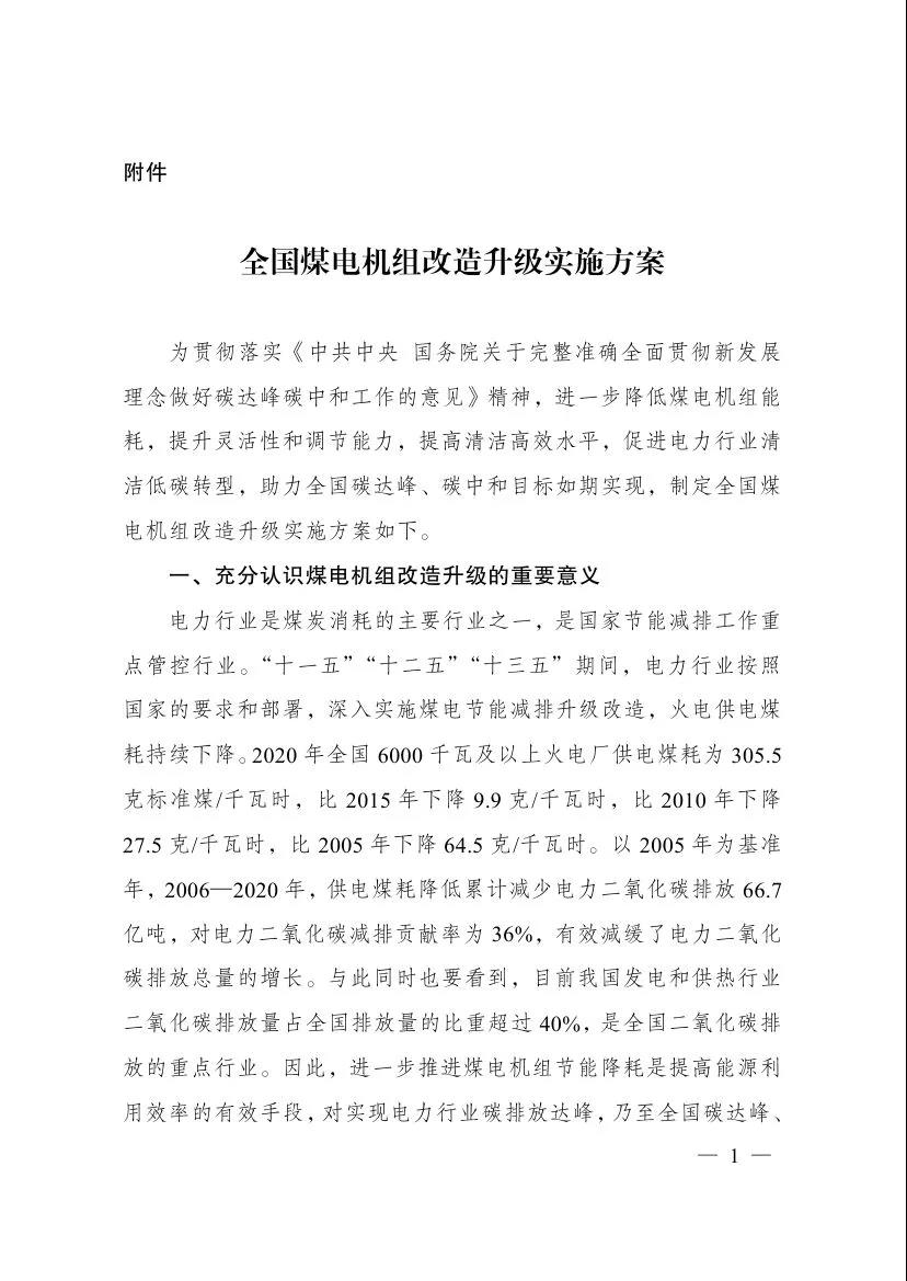 附件:全國煤電機組改造升級實施方案