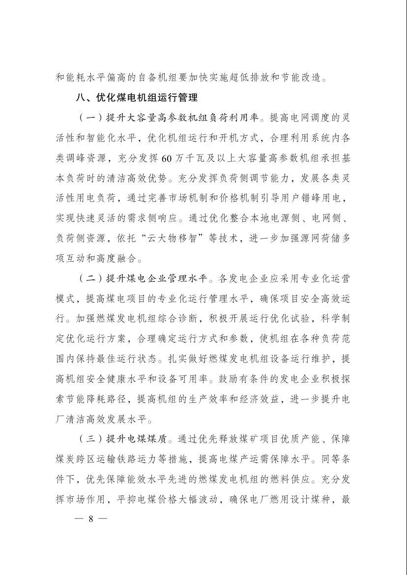 一、高度重視。我國力爭實現(xiàn)2030年前碳達峰和努力爭取2060年前碳中和的目標,對優(yōu)化能源結(jié)構(gòu)和煤炭清潔高效利用提出了更高要求。煤電機組改造升級是提高電煤利用效率、減少電煤消耗、促進清潔能源消納的重要手段,對推動碳達峰碳中和目標如期實現(xiàn)具有重要意義。各地、各企業(yè)要高度重視,將煤電機組改造升級作為一項重要工作抓好抓實抓細,切實提高煤電機組運行水平。