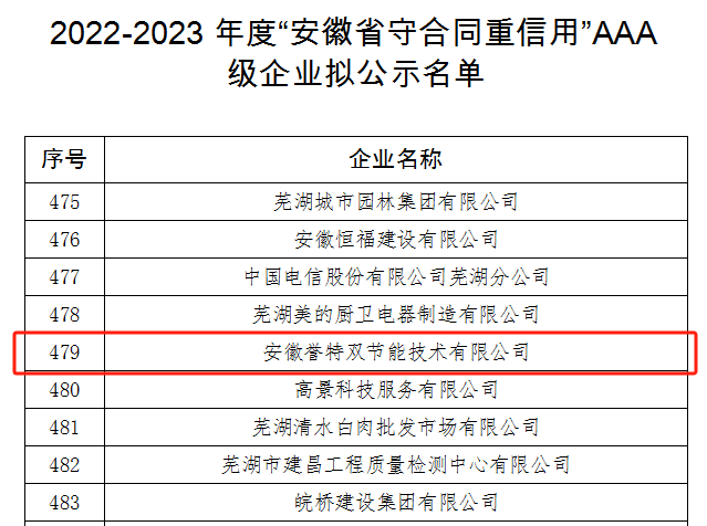 信譽(yù)是企業(yè)長(zhǎng)期穩(wěn)定發(fā)展的根基,反映企業(yè)在運(yùn)營(yíng)過程中的經(jīng)營(yíng)理念和發(fā)展宗旨,信譽(yù)程度在對(duì)外商務(wù)往來中已成為重要環(huán)節(jié)。本次入選安徽省守合同重信用AAA級(jí)企業(yè),綜合體現(xiàn)了我公司財(cái)務(wù)狀況良好、企業(yè)文化優(yōu)秀、社會(huì)信譽(yù)度高,在經(jīng)營(yíng)過程中無違法亂紀(jì)行為、無不良信用記錄等,樹立了良好的標(biāo)桿示范形象,公司也將繼續(xù)秉承守合同重信用經(jīng)營(yíng)理念,為國(guó)家節(jié)能環(huán)保事業(yè)做出更大的貢獻(xiàn),一諾千金,合作共贏!